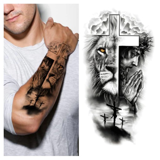 Tatuagem Temporária Masculina E Feminina Leão E Jesus Cristo - 21x11cm Pronta entrega - Removível - XQB-380