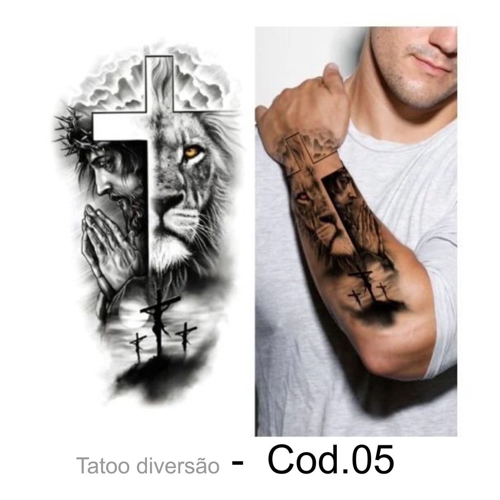 Tatuagem Temporária Leão E Jesus Cristo Masculina E Feminina - 10x15cm