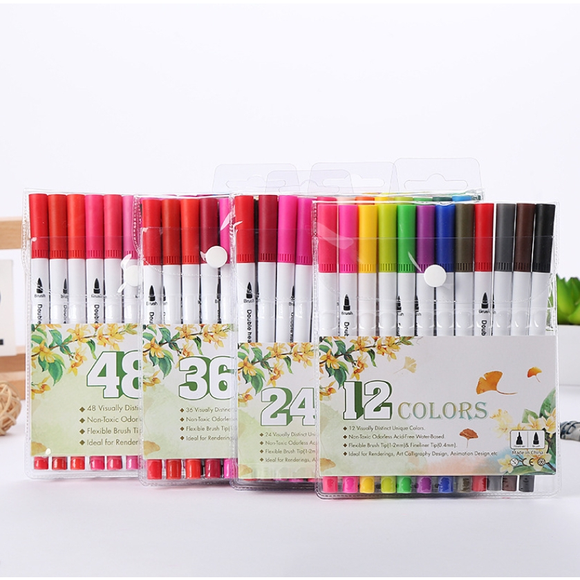 12/24/36/48/60 Cores Caneta Com Ponta Dupla Brush Pen/Kit De Canetas Para Escova/Artigos De Papelaria