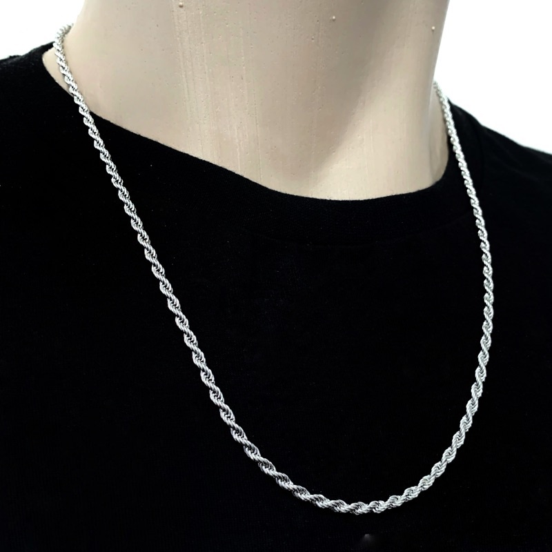 Corrente fina cordão baiano torcido trançado prata Aço Inoxidavel cirurgico 60cm