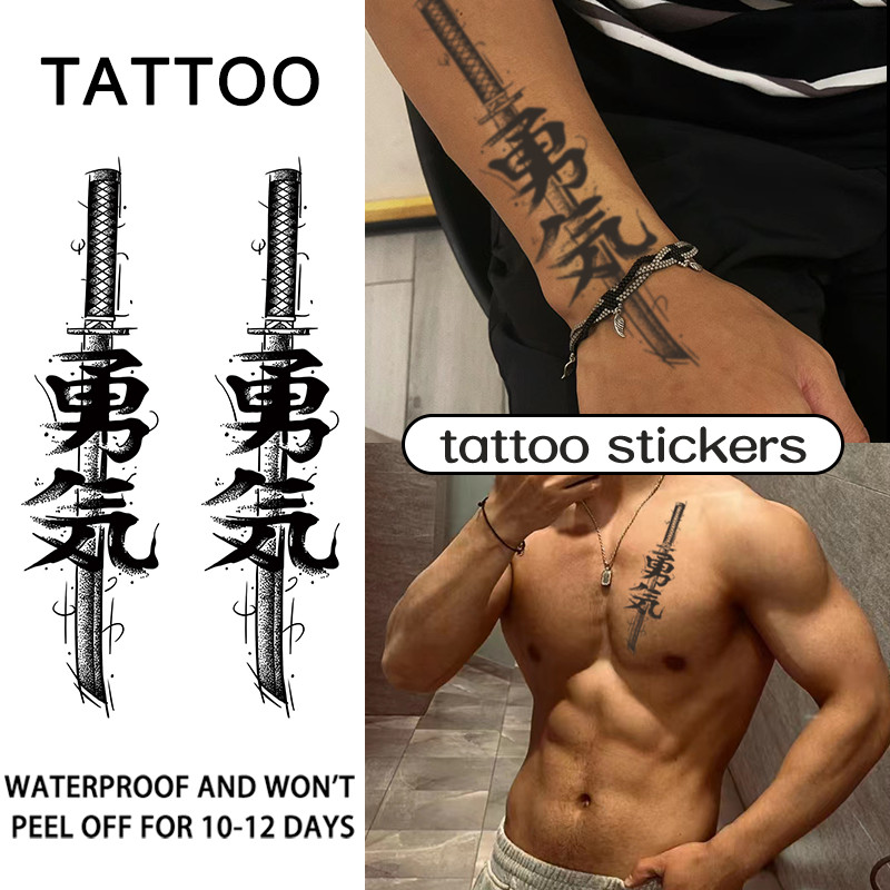 Faca de Samurai Ombro do Braço à prova d'água de longa duração Uma semana a duas semanas Autocolantes Tatuagem Semi-Permanente Autocolantes Tatuagem Temporária Homens Mulheres Tatuagem Falsa