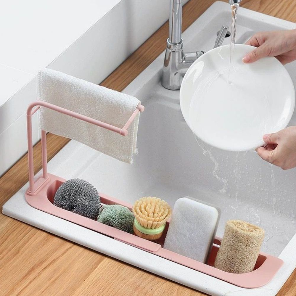 Suporte Organizador Pia Cozinha Ajustável Multiuso Escorredor Retrátil Pano Esponja