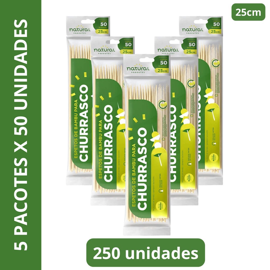 Pacote com 250 palitos de bambu espeto p/ churrasco 25cm ou 30cm