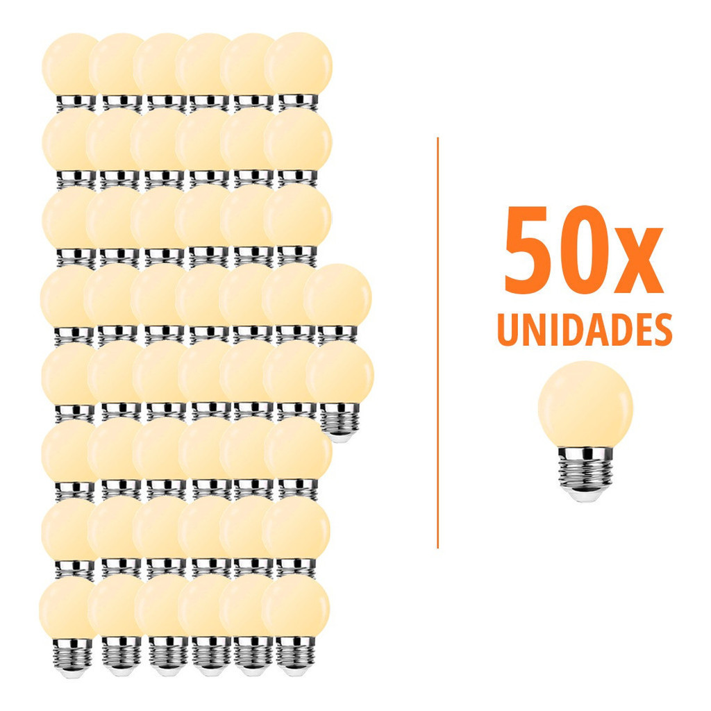 Kit 50 Lâmpada Bolinha Bulbo Led 1w Branco Quente 110v 220v