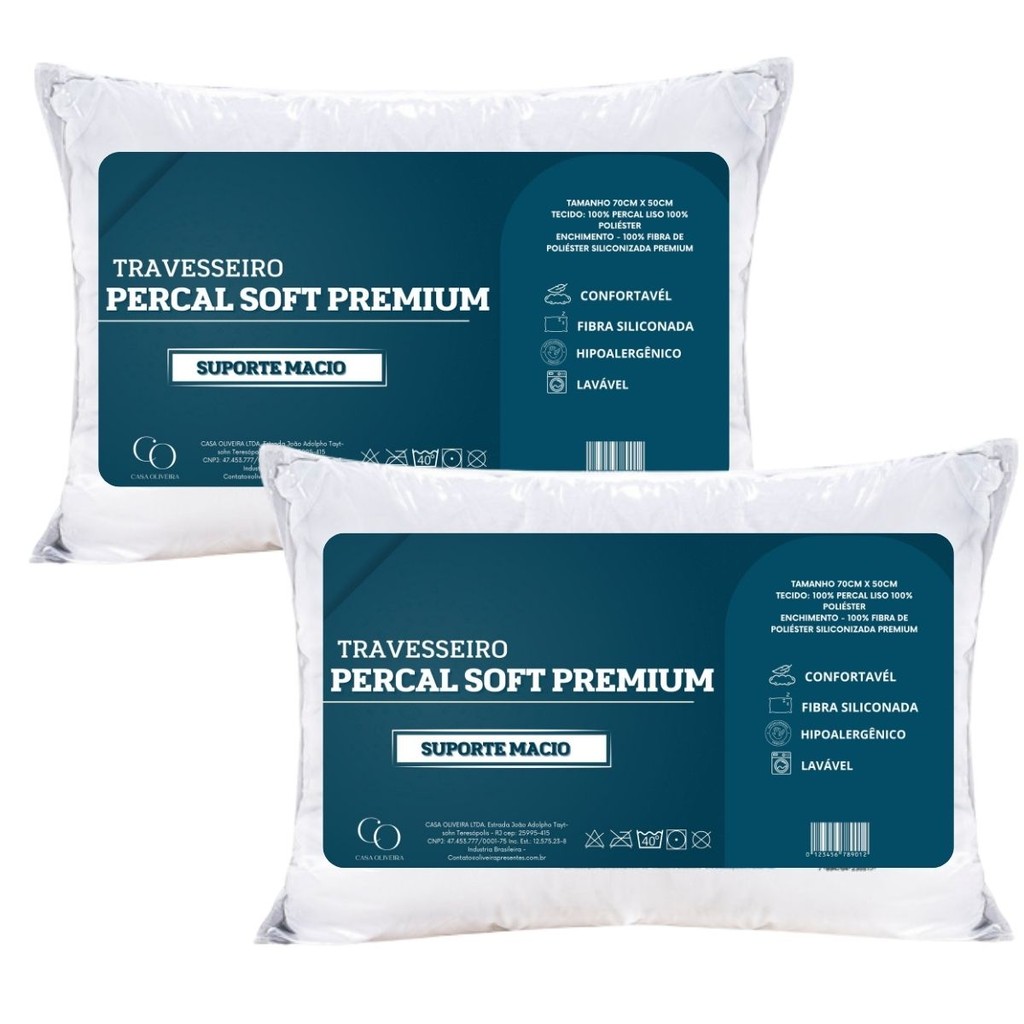 Kit 2 Travesseiro Percal Premium Padrão Hotel 70x50cm Soft Premium Macio Antialérgico Antimofo