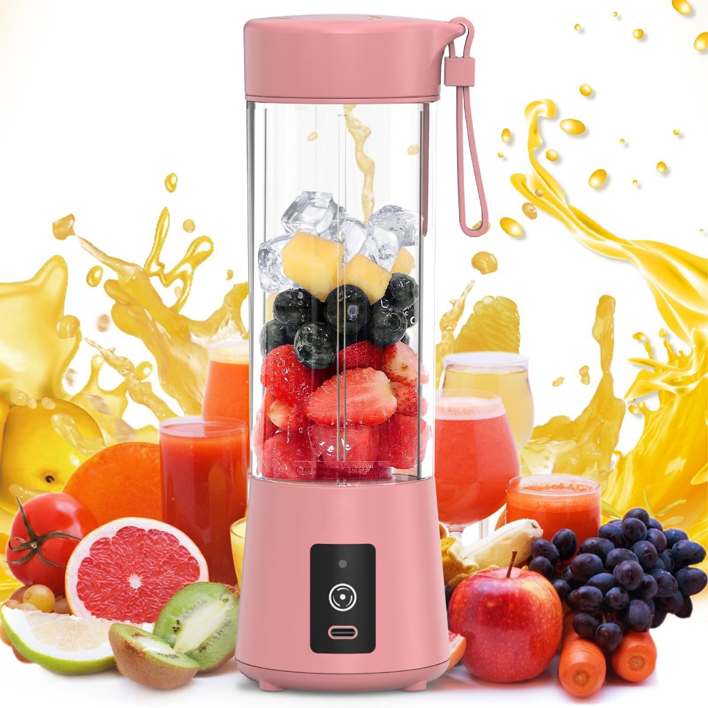 Mini Liquidificador Portátil Shake 6 Lâminas 380ML Espremedores Recarregável Cabo USB