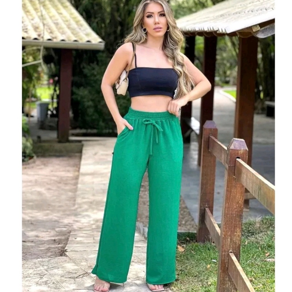 Calça Feminina Com CORDÃO e Bolso Cintura Alta Lançamento 2024