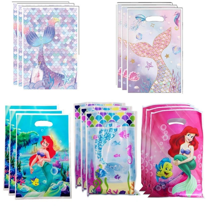 10/40 Pçs A Pequena Sereia Sacos De Presente De Plástico Crianças Decorações De Festa De Aniversário Doces Saco De Saque