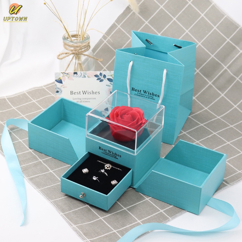 Caixa De Jóias Porta Dupla Rosa Eterna Caixa de Presente Caixa de Embalagem de Jóias Anel Brincos Colar Caixa de Jóias Presente do Dia dos Namorados