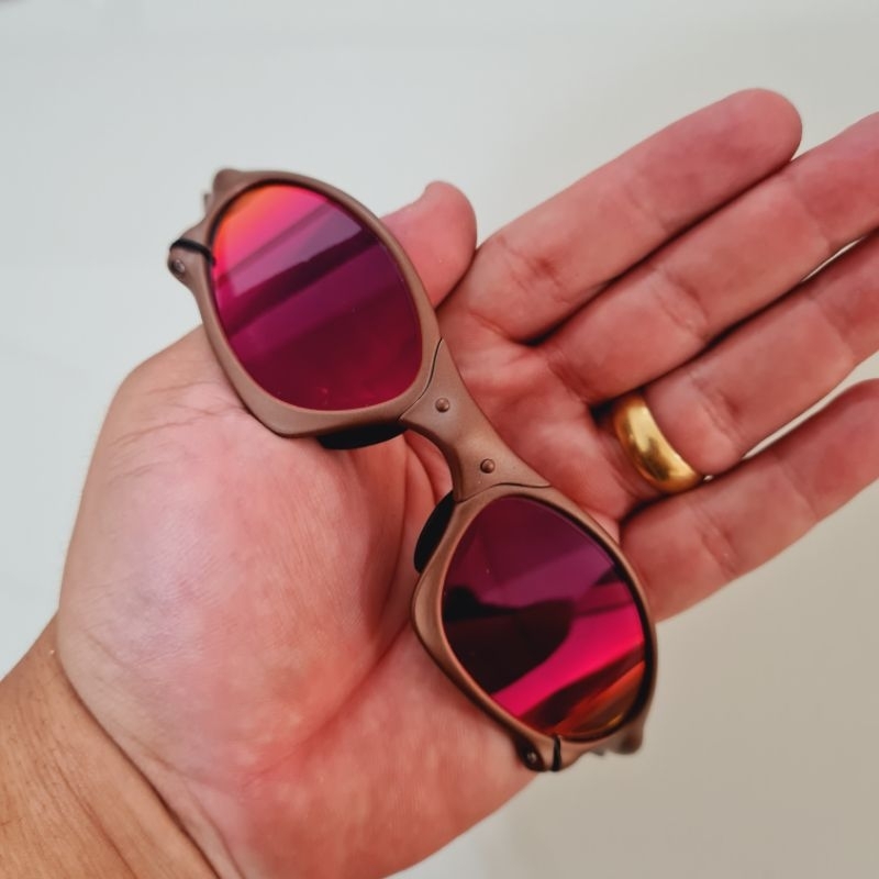 Óculos de Sol Juliet Dark Rubi carbon metal importado preto lente vermelho escuro espelhado