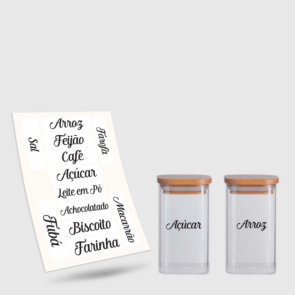 Kit 42 Adesivos Etiquetas para Organizar Mantimentos em Potes de Cozinha Modelo Dicionário Vinil Transparente 7x7cm