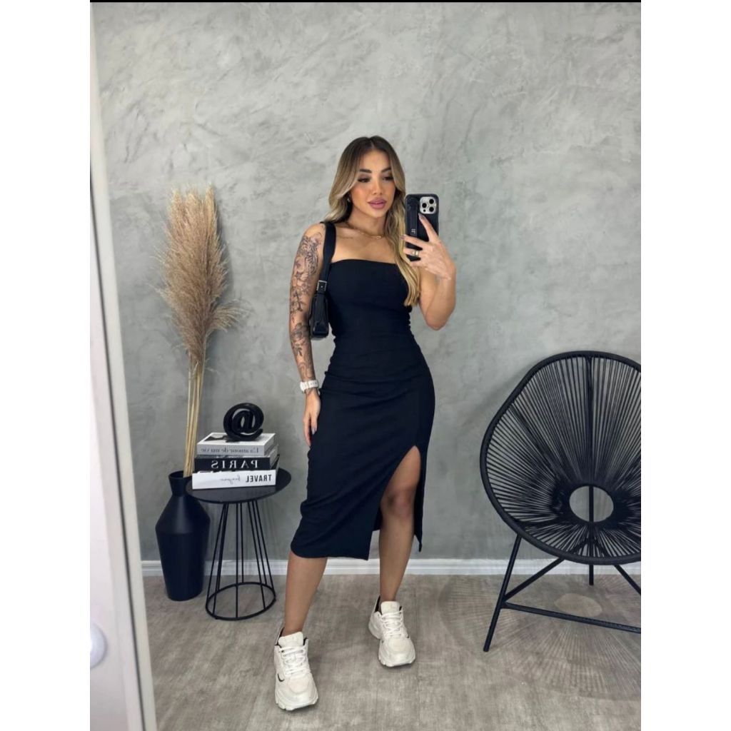 Vestido Midi Canelado Tomara que Caia Tubinho Liso Tricot Modal Premium Moda Verão 2024