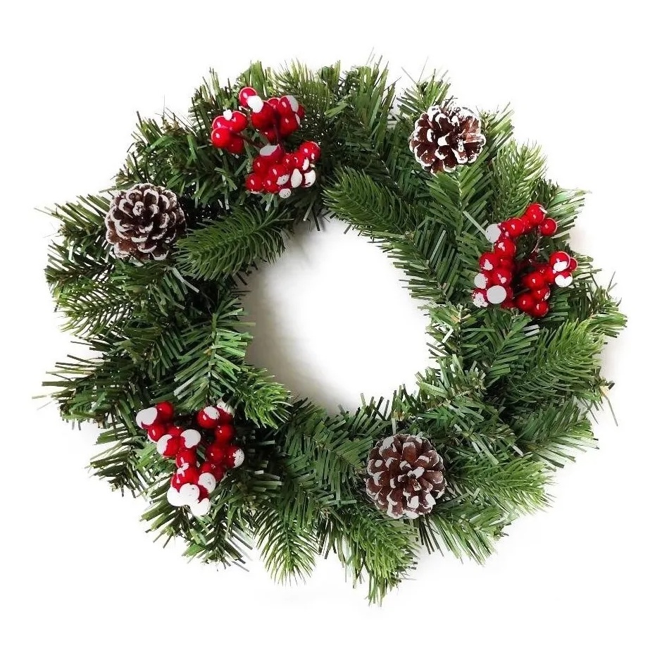 Guirlanda Natal 30cm com Pinhas Berries Enfeite Decoracao Natalina Luxo Premium