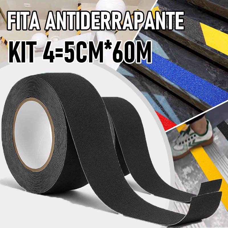Fita Antiderrapante Adesiva 5m Preta Area Interna Piso Escada Rampas Degraus