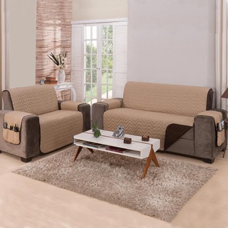 Kit Protetor Capa de Sofá Impermeável Dupla Face 2 e 3 Lugares c/ Bolsos Ótimo para Pets PROMOÇÃO