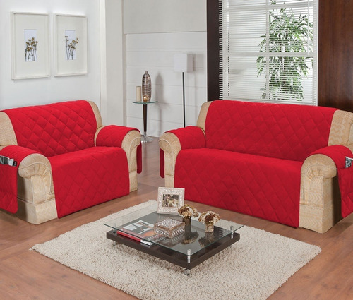Kit Capa Sofá De 2 e 3 Lugares Protetor De Sofa Casa Com Porta Objetos Capa Protetora Sofa