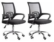 Kit 2 Cadeiras Escritório Basic Diretor Fixa Tela Mesh Preta Base Cromada
