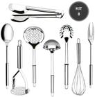 Kit 8 Utensílios 100% Inox Para Cozinha -Pegador Massa - Ralador - Batedor de Claras, Massador de Batata, Pegador Massa, Concha , Garfo e Escumadeira De Alta Qualidade
