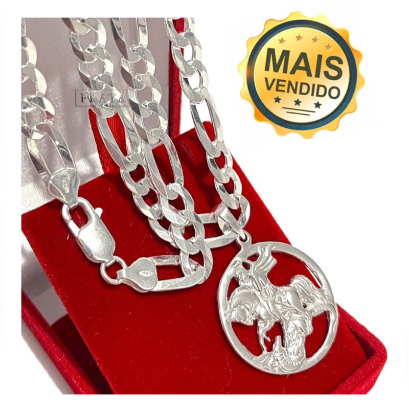CORRENTE DE PRATA 10MM 70 CM GROSSA PRATA NACIONAL PINGENTE SAO JORGE GRAVADO 925 CORDAO CORRENTINHA GRUMET ESCAMA
