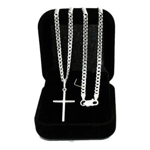 Corrente Cordão Grumet Masculino De Prata Pura 70 cm + Pingente Crucifixo