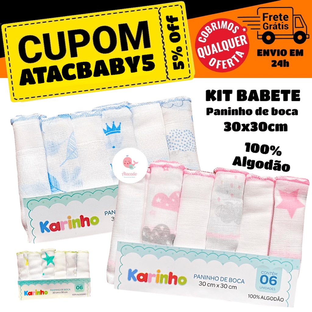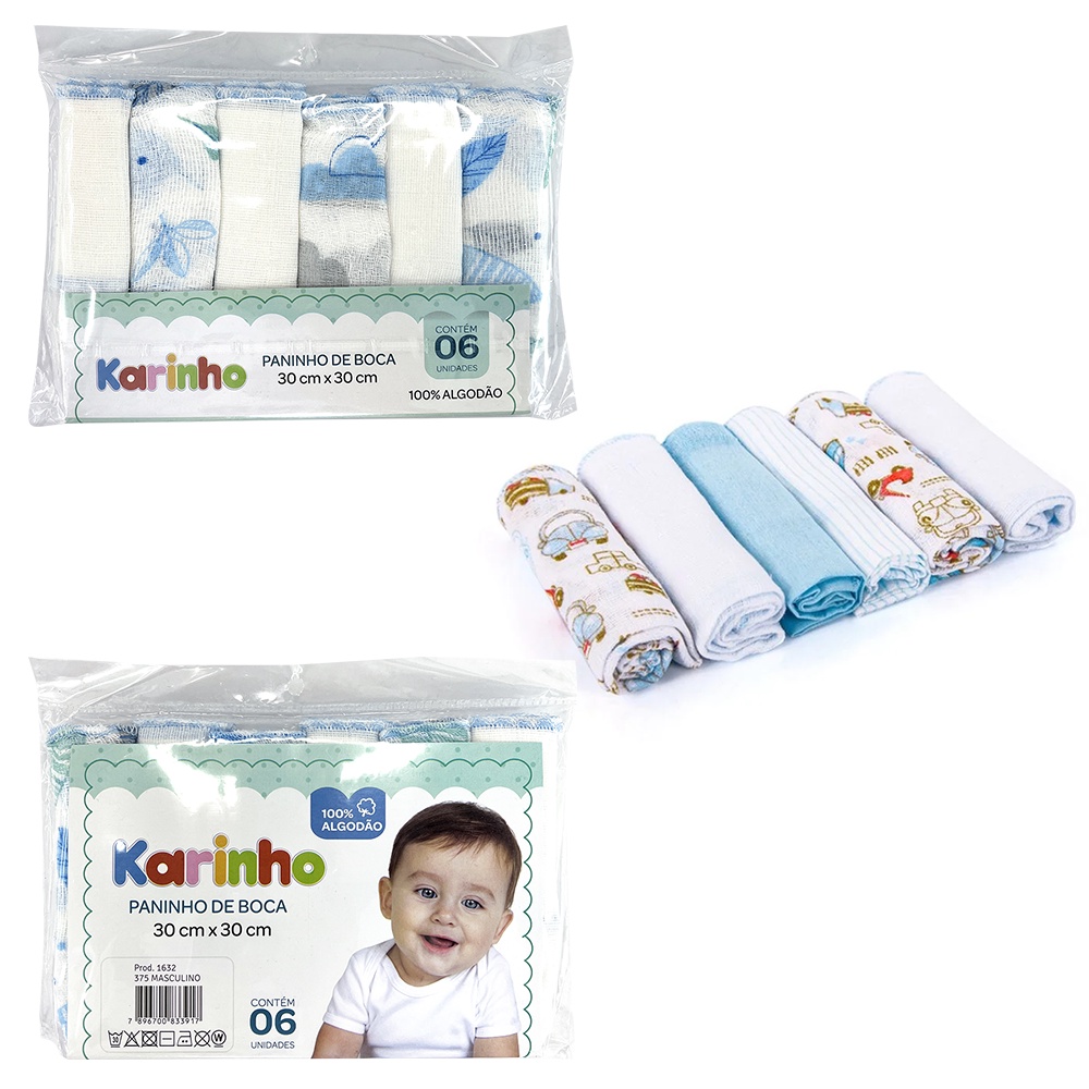 Kit 06un Paninho De Boca Bebê 30x30cm Toalha Babete Algodão Menino