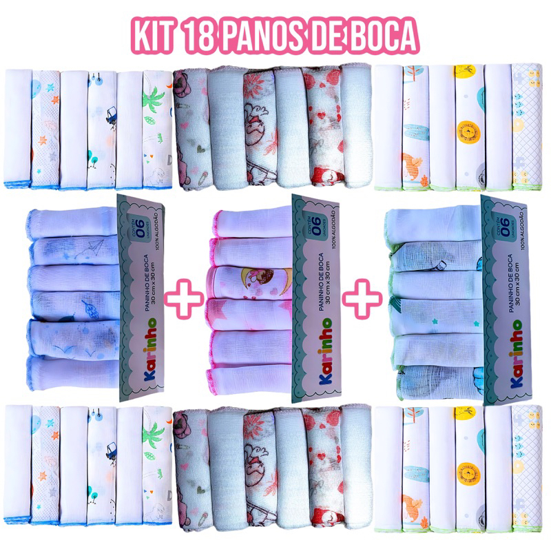 Paninho De Boca Bebe Kit 18 Unidades Babete 30x30cm Fralda Pano Bebê 100% Algodão Papi