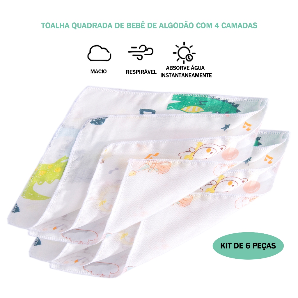 Pano de Boca Kit 6 Unidades Babete Paninho Fralda de Bebe 100% Algodão 25cmx25cm Papi 100% Algodão
