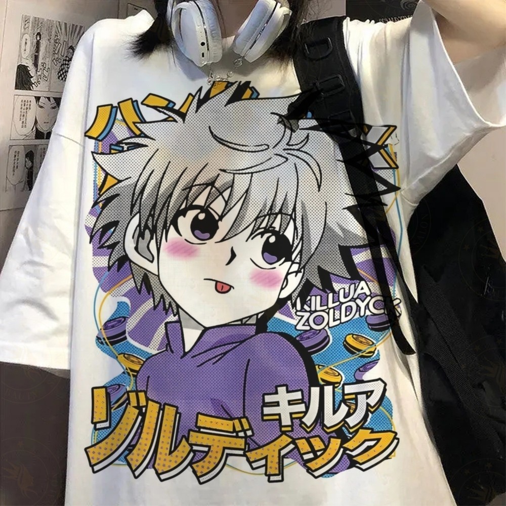 Camiseta básica unissex oversize Killua X Zoldyck Hunter X Hunter Anime Streetwear