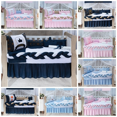Kit Berço Trança Menino Completo Padrão Nacional E Americano 9 Peças Modelo Tranca Azul Verde Safari Bege Branco Neutro Nuvem Amor Protetor Lateral Berço para bebê Enxoval para berço - Promoção