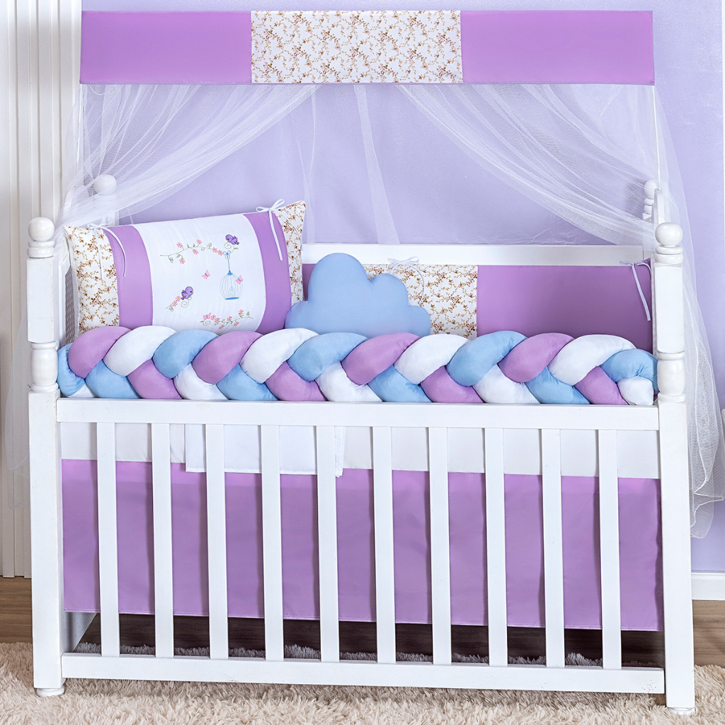 Kit Berço Americano Trança 11 Peças Para Bebê Menina Jardim Lilás Nuvem