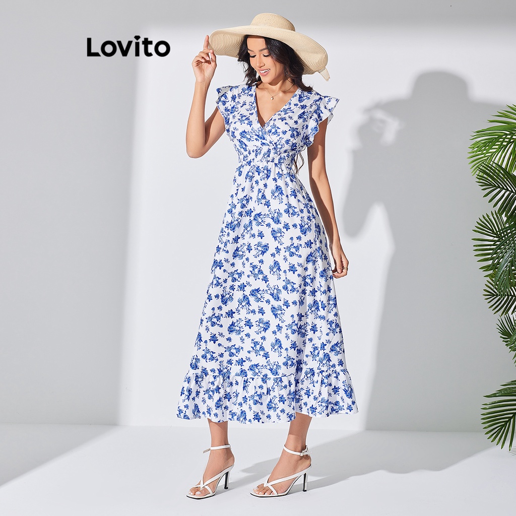 Lovito Vestido Boho Ditsy Floral Com Babados E Bainha Para Mulheres LBL07198