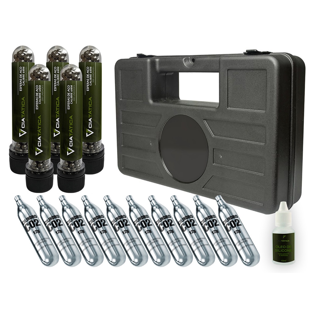 Kit 10 Cilindros Co2 12g, 1000 Esferas de Aço 6mm, Maleta Case Rígido de Pistola e Óleo de Silicone Para Rossi C11 M9 PT