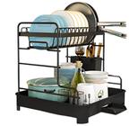 Escorredor de Louça 2 Andares com Dreno 360° Giratório – Aço Carbono Antiferrugem e Grande Capacidade