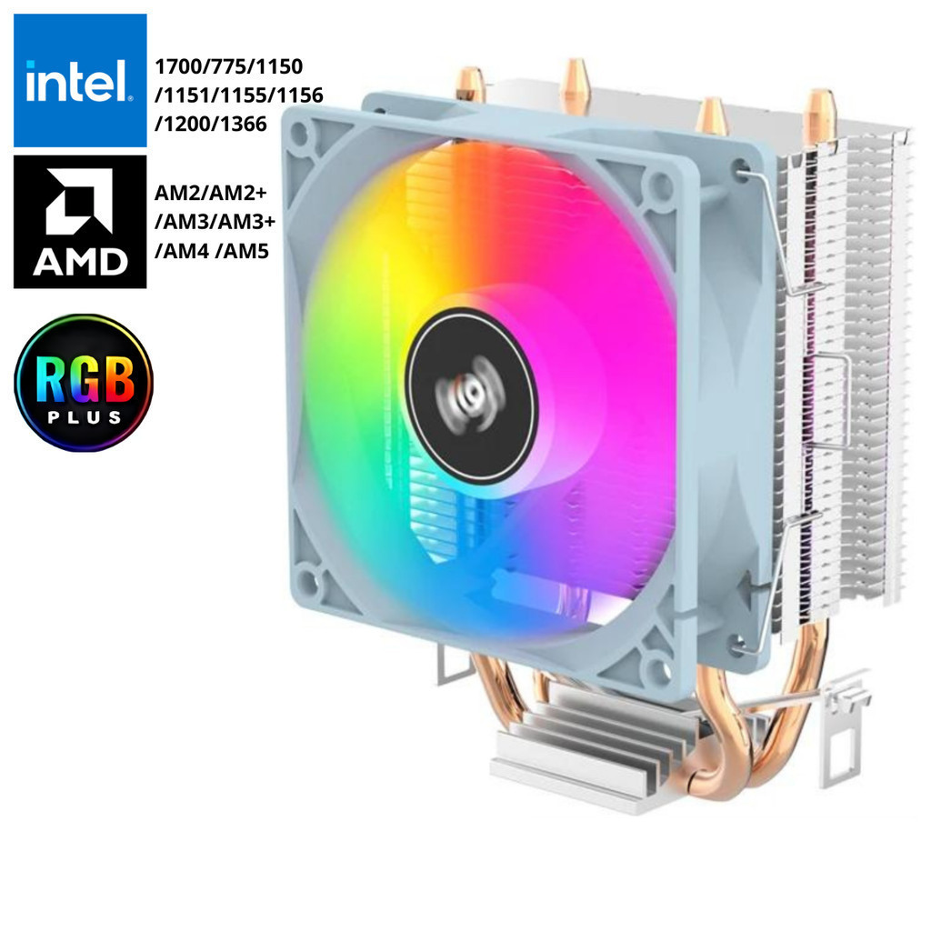 Air Cooler Led RGB Gamer para Processador Intel Lga 775 1150 1151 1155 1156 1366 1200 e Amd AM2 AM3 AM4 FM1 FM2 2 heat Pipe Rise Mode Profissional