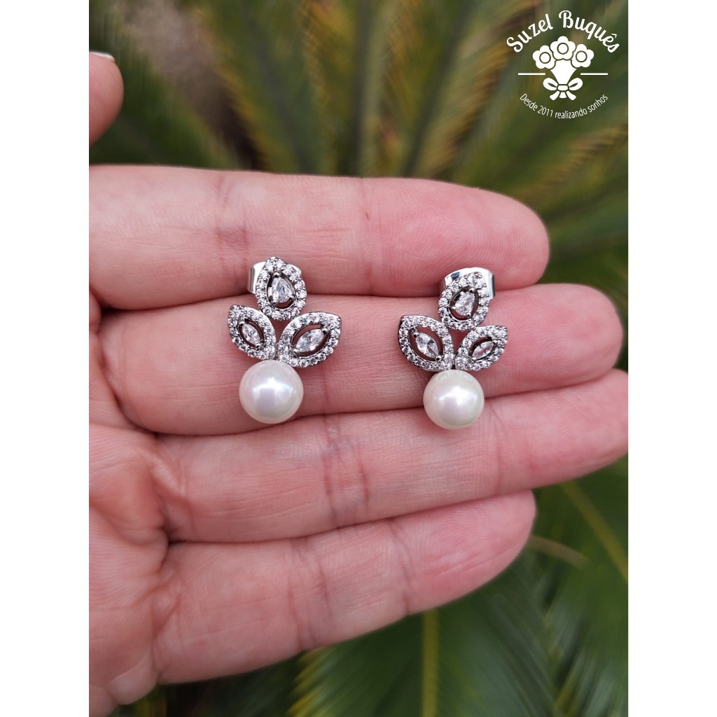 Brinco de Noiva Pérola Zircônia Prata Festas Debutantes Bodas Madrinhas