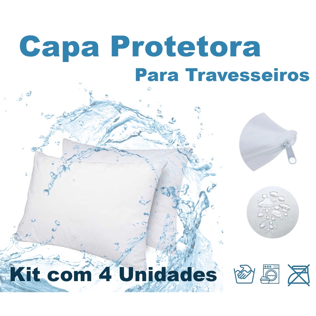 Kit 4 Capas Protetora Impermeável Antiácaro Com Zíper Para Travesseiro