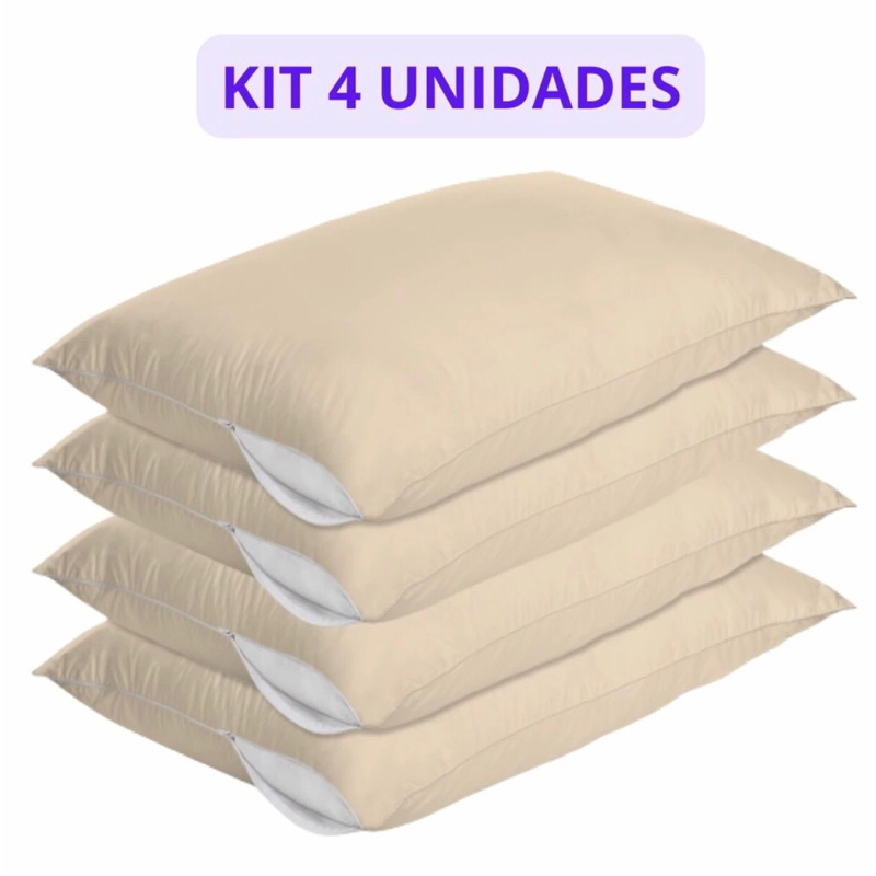 Kit 4 Capas Protetoras de Travesseiro Bege Com Zíper Antiácaro Proteção Completa