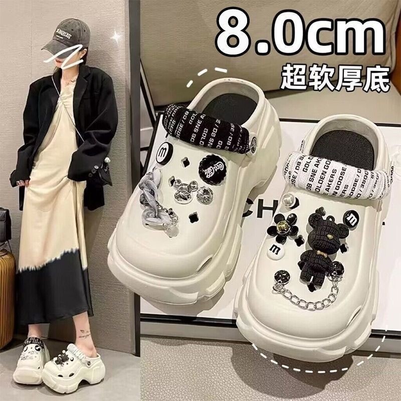 DA Sandálias Femininas Chinelos De Praia Antiderrapantes Plataforma EVA Crocs Sapatos De Saúde De Sola Grossa 2024 Novos Verão Com Buraco De Desenho Animado As Mulheres Usam Bonitos Integrados Cabeça De Saco Pisando