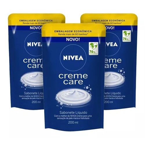 KIT NIVEA Refil Sabonete Liquido Crem Care 200ml - 3 Unidades