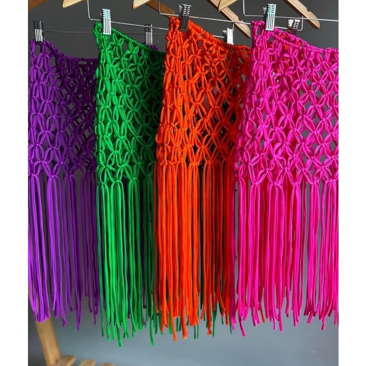 Saia Feminina Macramê Artesanal Crochê Saída de Praia Franjas