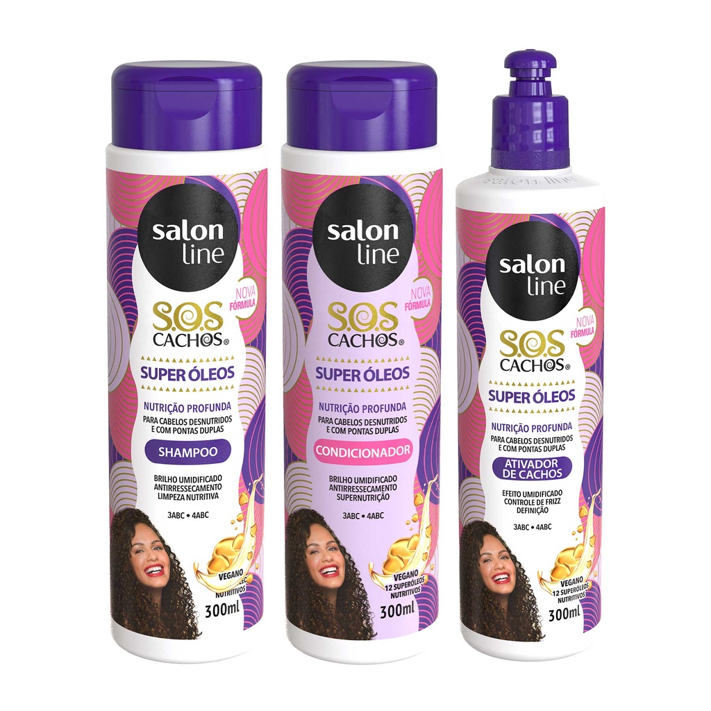 Kit SOS Cachos Super Óleos com Shampoo + Condicionador e Ativador de Cachos Salon Line