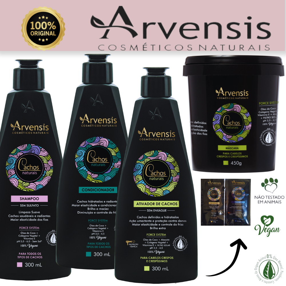 Kit Cachos Naturais Arvensis | Crespos e Crespíssimos - Shampoo+Condicionador+Máscara+Ativador de Cachos