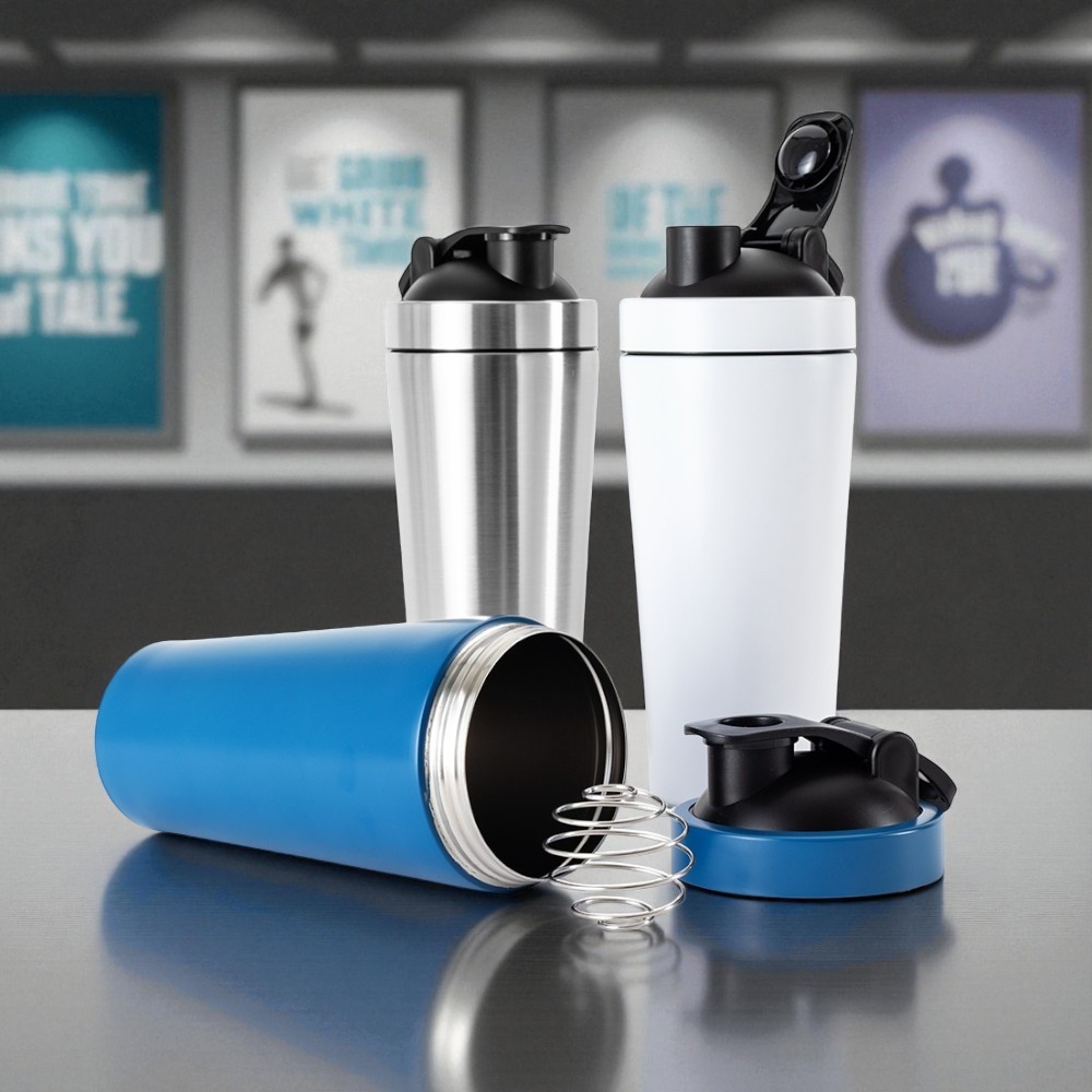 Coqueteleira Inox 900ml Com Tampa Rosqueável e Mola Shakeira Alça Acoplada Vedação Antivazamento