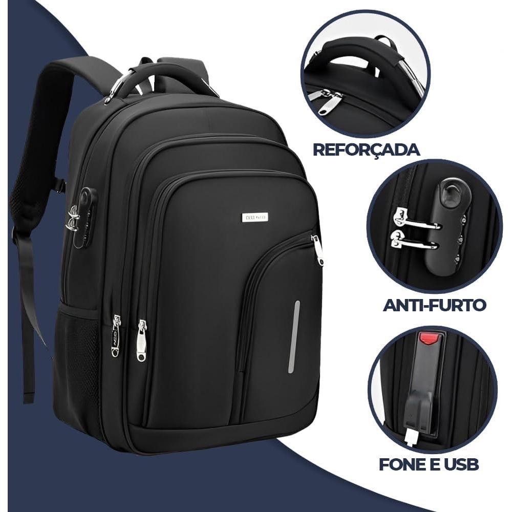 Mochila notebook Anti furto e Anti-roupo com Cadeado e Entrada Fone de ouvido e USB