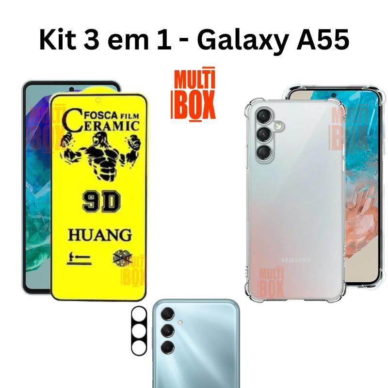 Película Fosca Samsung Galaxy A55 + Capa Capinha Anti Impacto Transparente + Película de Câmera