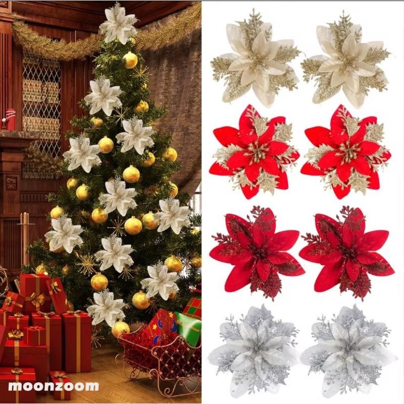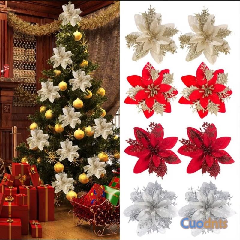 10/5Pcs 14cm Glitter Flores De Natal Artificiais Ornamentos Feliz Decorações Para O Ano Novo Em Casa Navidad