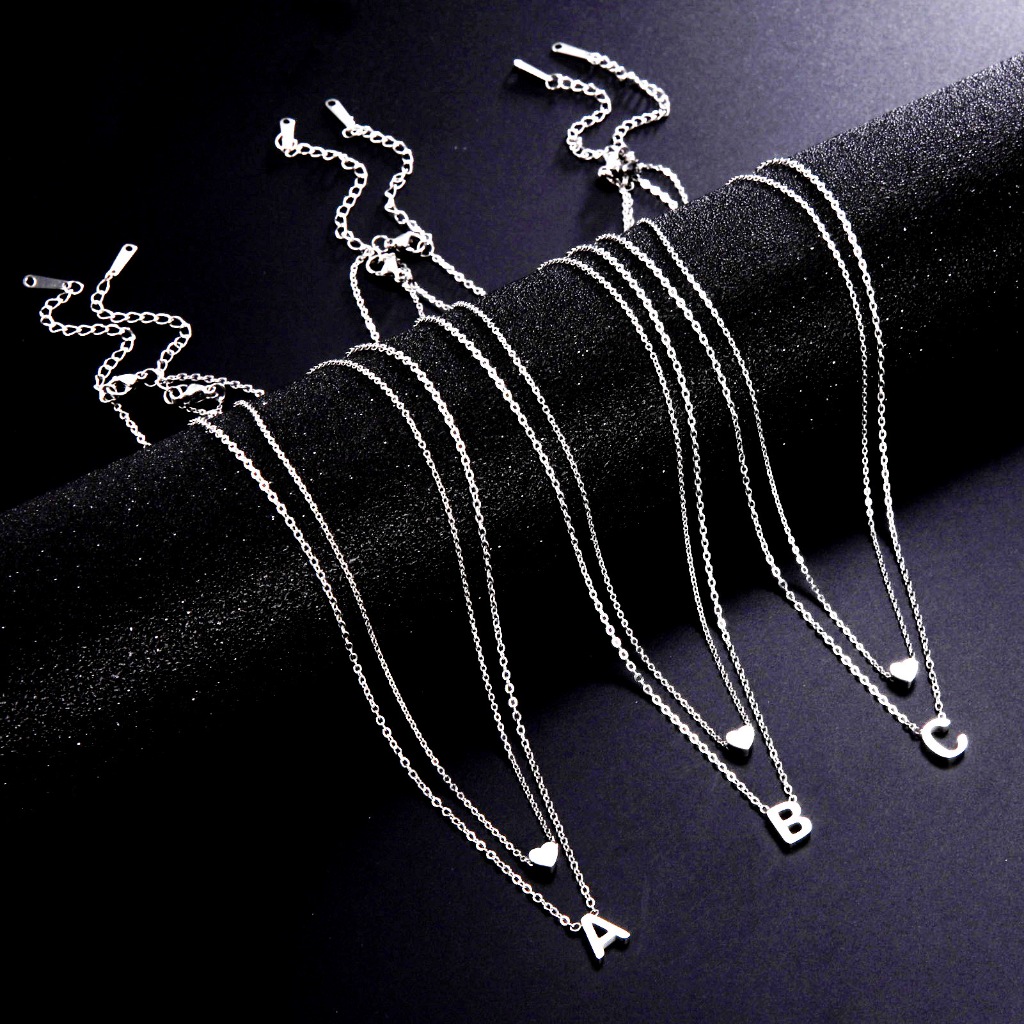 Kit 2 Colar Com Pingente Letras Feminina Inicial do Nome e Coração banhado prata 925 ou ouro 18k