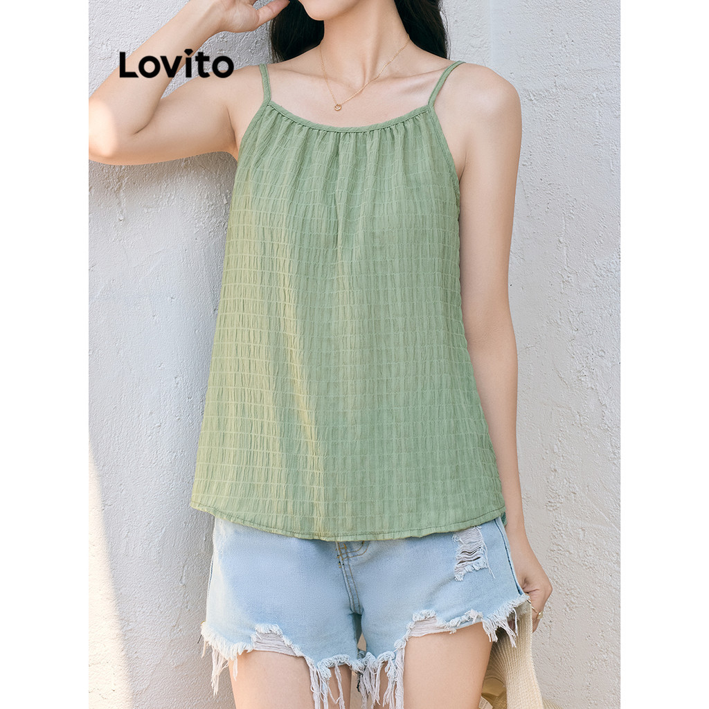 Lovito Blusa Feminina Casual Com Botões Lisos E Botões LNE31261 (Damasco/Verde Claro)