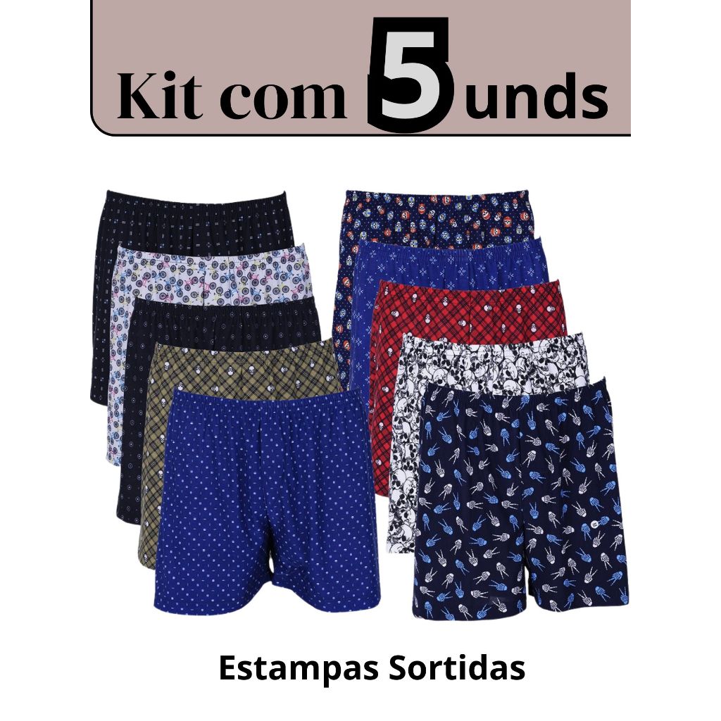 Cueca Samba Canção Estampada Kit Com 10 Short de Ficar em Casa Dormir Pijama Masculino Algodão Plus Size
