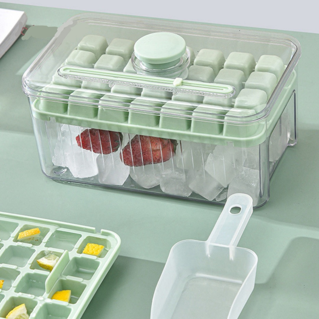 Forma Bandeja Cubo de Gelo Caixa Dispenser Silicone Molde Duplo 64 Cubo de Gelo